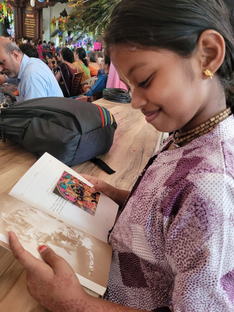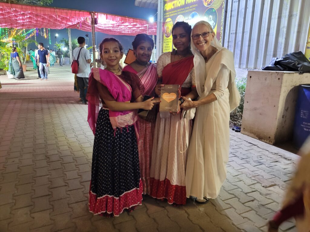 I was also fortunate to attend the delightful Kirtan Mela, ‘Madhura Mahotsava,’ while I was there. My granddaughter, Madhurika, had the honor of leading a kirtan, and she sang beautifully, chanting the Hare Krishna maha mantra and the bhajan ‘Emona Durmati’ by Bhaktivinoda Thakura.