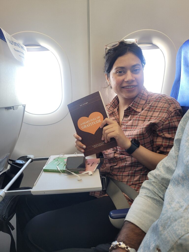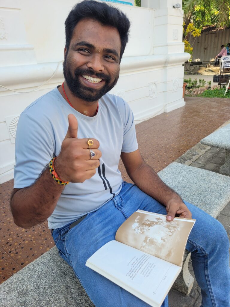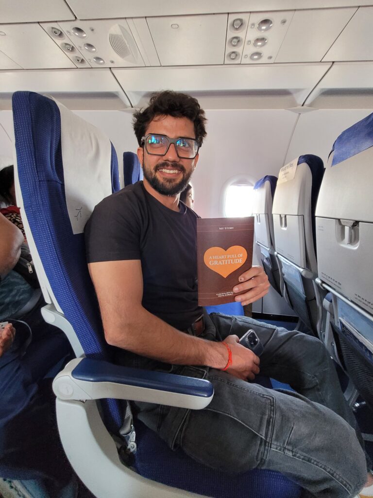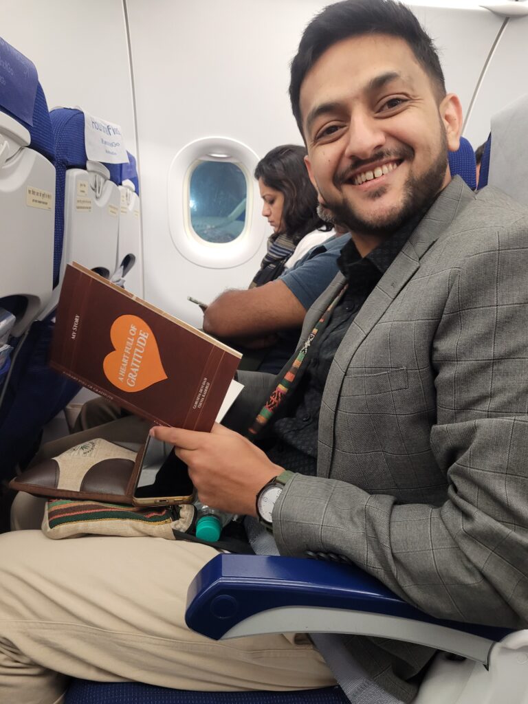 At the Bhubaneswar airport, I approached a gentleman from Italy, a researcher, and asked if he could kindly help me book a taxi online. He did so, and while we were waiting, we had a friendly conversation. He snapped a photo of me, added the caption ‘I just meet people,’ and I absolutely treasure it. To my surprise, he didn’t believe in reincarnation. Unfortunately, I was out of books. I still hope to reconnect.