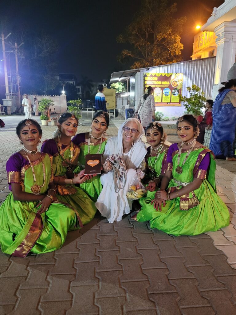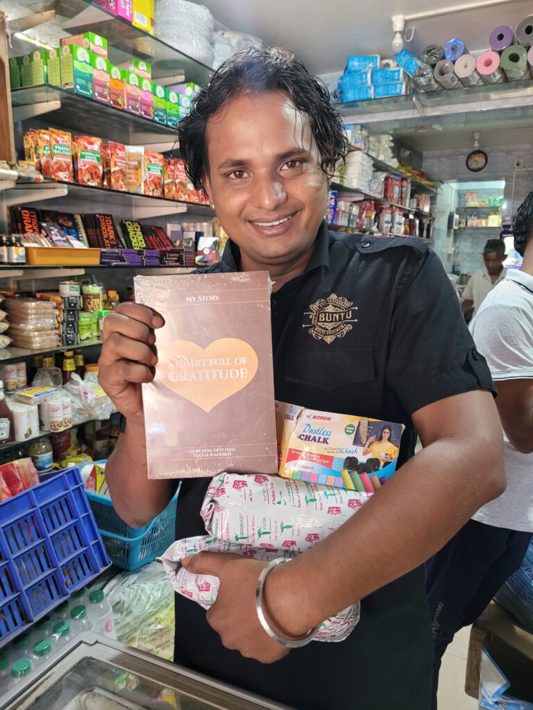 In Vrindavan, as a gesture of heartfelt appreciation for their lifelong service, I gifted my book to almost every Srila Prabhupada disciple present at the festival. I quickly began receiving positive feedback—some devotees even offered donations. Dina Bandhu Prabhu’s wife, Akuti Devi Dasi, approached me and said with a smile, ‘Your book kept me up late last night—well done!’