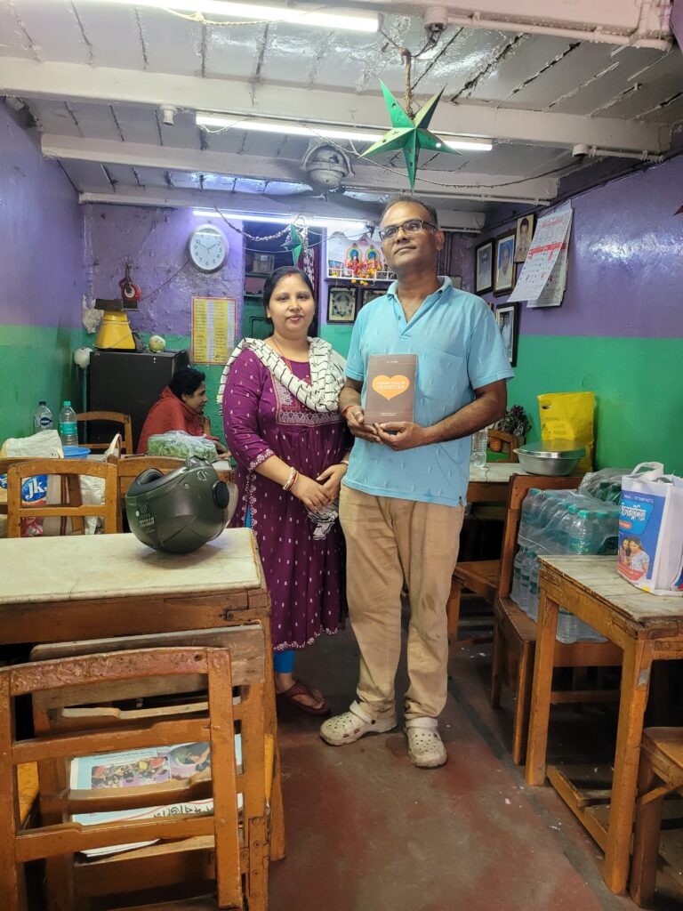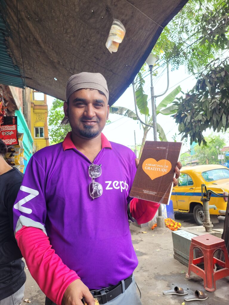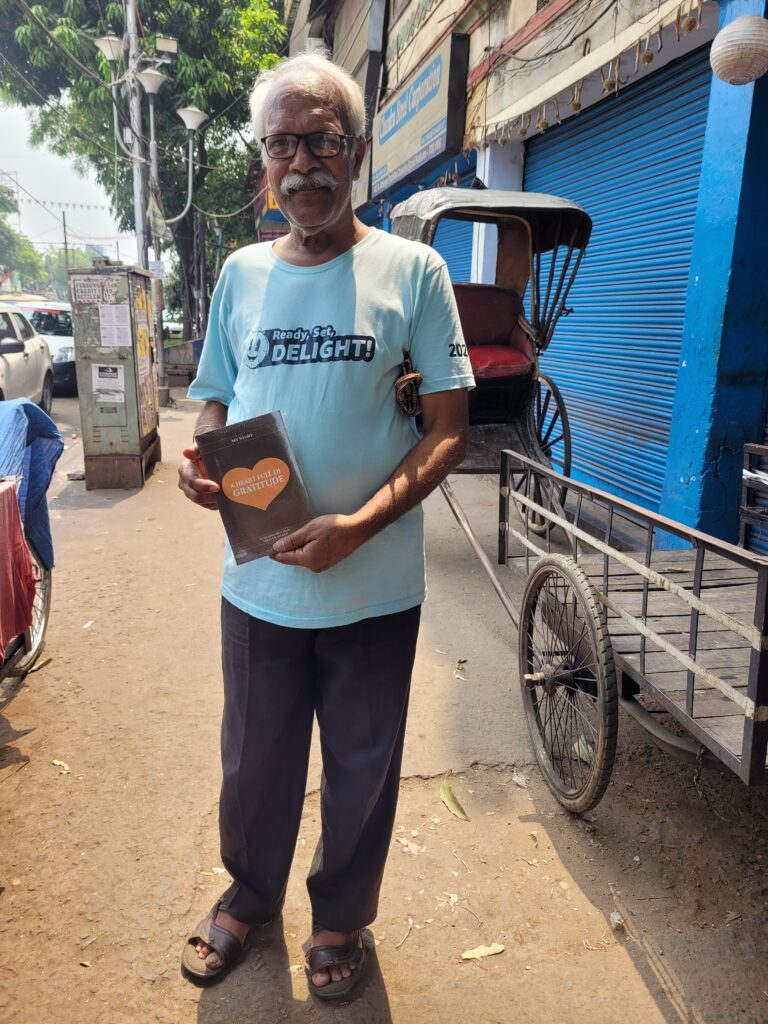 In the city, I met a homeless family. The boy told me he could read English, so I gave him a copy of my book. I also met many kind and thoughtful students and occasionally visited shops and a bank. This time, I experienced Kolkata in a completely different light—not just as a busy, noisy city, but as a place where you meet many kind-hearted people. I’m really starting to like it.