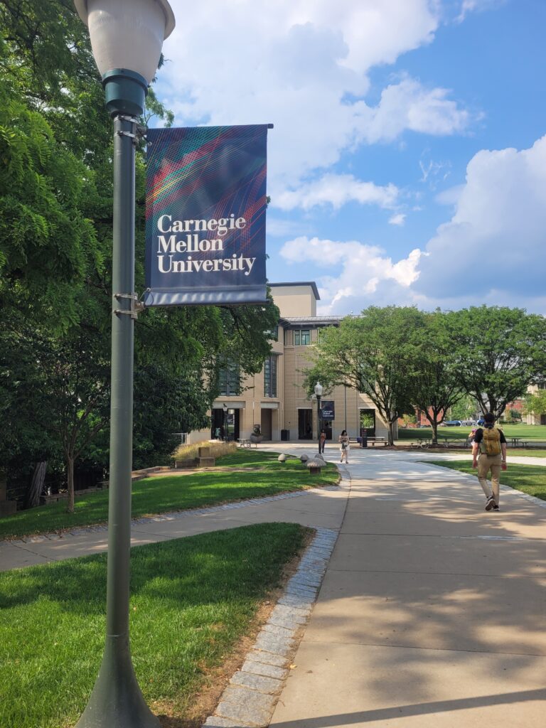 I reached ‘Carnegie Mellon University’. At a shaded spot, I took off my shoes and stood on the grass, feeling the need to be more grounded. From time to time, I took my medicine, while also approaching people—and everything felt super sweet! The last book I brought to the university library, and to the lady working there, with whom I had a pleasant conversation, I gifted the card of Sri Sri Radha-Krishna on the swing—which is included in the book—so that it would not get lost.