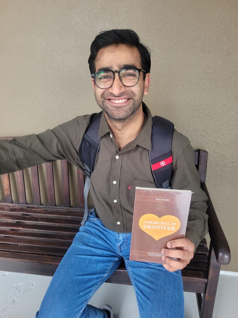 My good fortune was to receive a personal darshan with Sacinandana Swami. During that sacred meeting, I offered him my book along with a wooden foot massage roller. He kindly accepted both with genuine appreciation, which deeply touched my heart.
