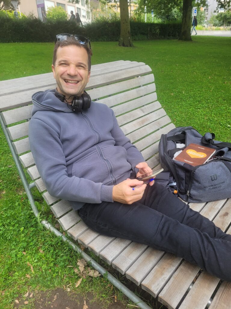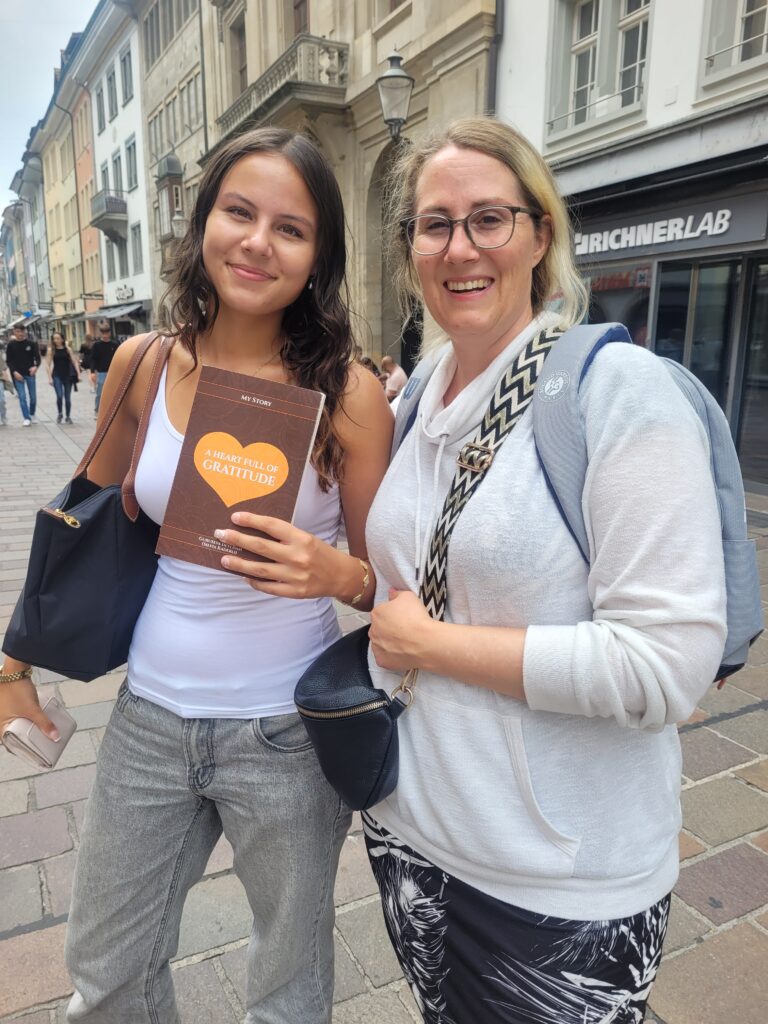 With only a few days left in Switzerland, I focused on spending as many hours as possible going out with my book. By Krishna’s arrangement, I met many nice people—one book went out while waiting for the train, two more on the train, and later several on the road. It felt like a festival and made me eager to return to Switzerland.