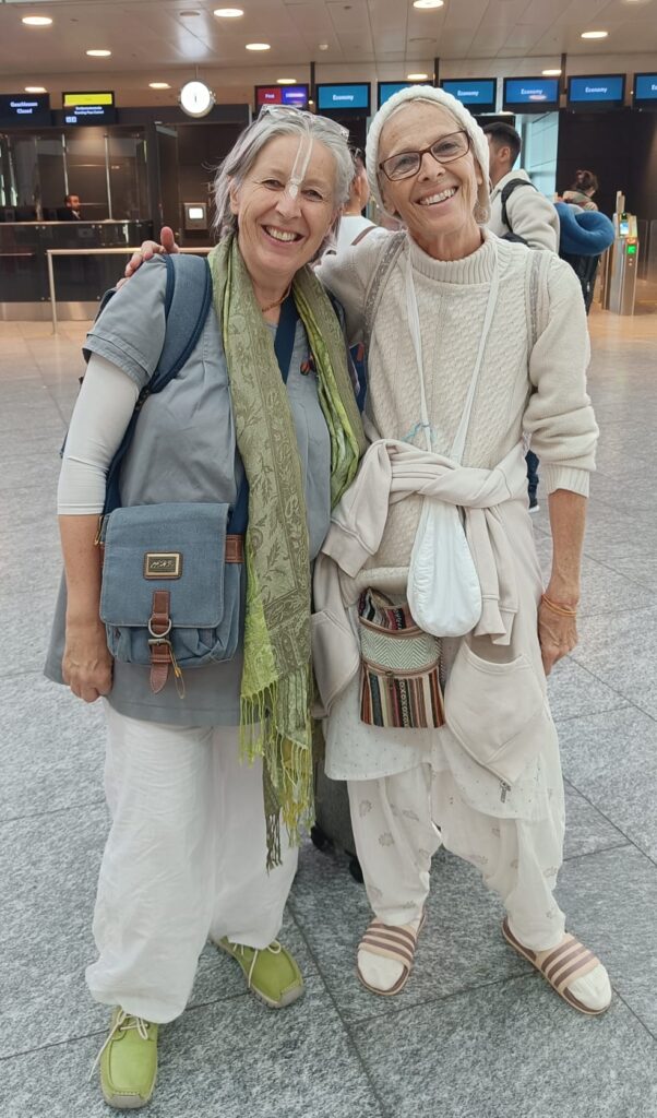 After five long hours, my passport was suddenly handed back to me—without a single word. At last, I was reunited with my suitcase. Then came customs. One officer, speaking in an authoritative tone, demanded, “Open your suitcase!” I was just about to do so—wondering what they might say when they saw the ten books inside—when another officer interjected, “I think she is a Hare Krishna.” With that, they waved me through without checking further.